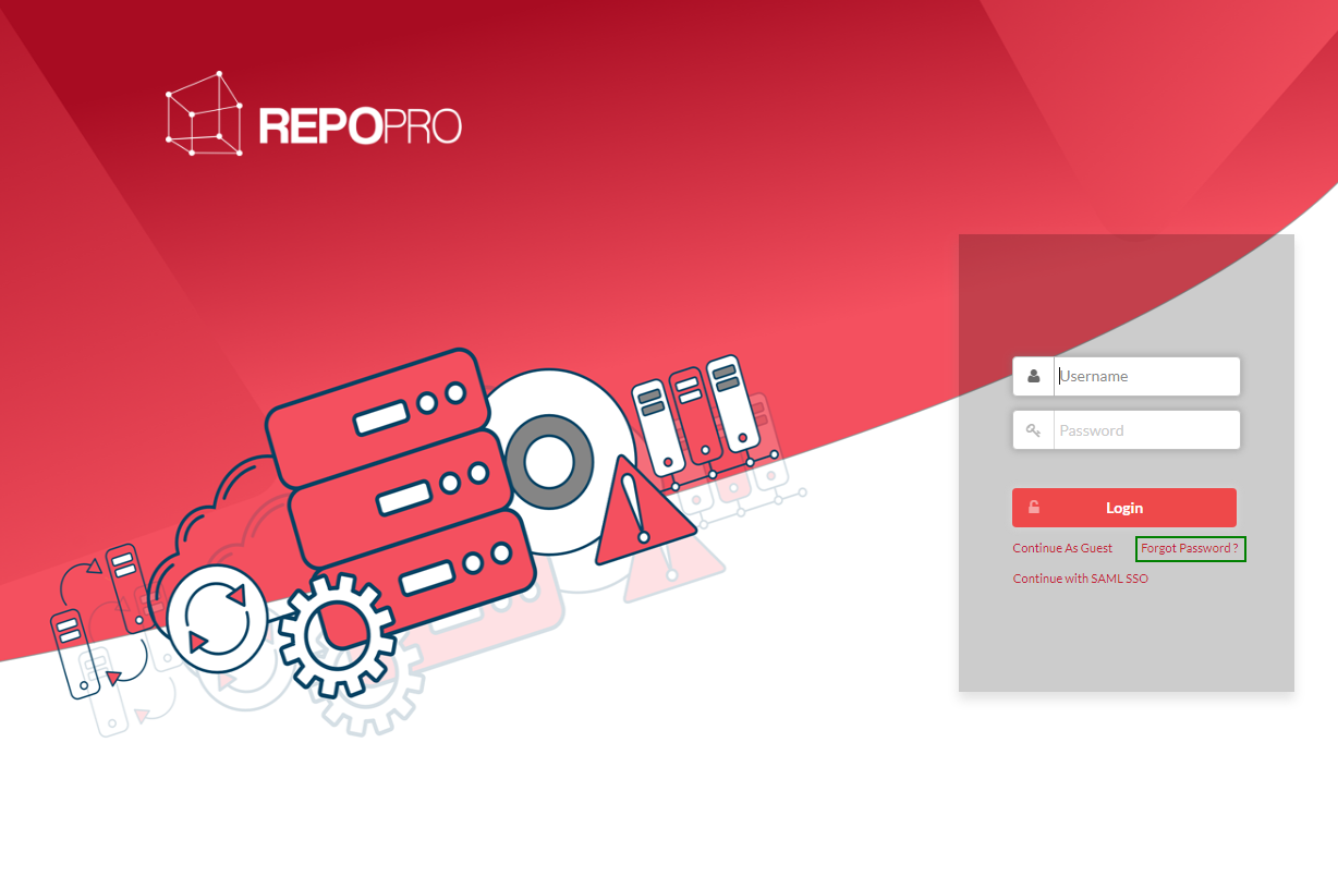 https://<server>/repopro/login.htmlto access the Login page.In the Login page, in the Username box, type in the user name and in the Password box, type in the user password.